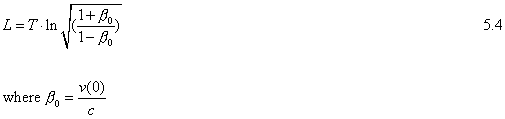 Thus, the Doppler shift corresponding to the initial velocity is the same as the cosmological redshift at the ultimate range, L, where the particle has come to rest. The redshift actually is constant (see the Appendix) for a freely receding or approaching particle in the EST universe regardless of the distance. In the Standard Cosmological Model, the particle moves at constant velocity all the time, but in the EST universe it coasts to a stop due to cosmic drag at a distance where the cosmological redshift equals the initial Doppler shift.