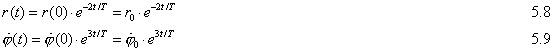 With these preliminaries we are in position to investigate the motion of stars in galaxies. Expression (5.11) provides information on radial decay rates as a function of the radial distance and time. For example, if the mass of the galaxy increases linearly with the radius we see that a radial decay rate proportional to exp(-t/T) will satisfy (5.11). Using the velocity relation (5.12) we then find that the velocity is constant so that the velocity curve is flat, which agrees with observations in spiral galaxies.