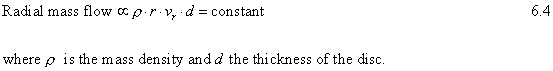 If the mass flow in a typical spiral galaxy is in a steady state, the amount of matter falling inward is constant independent of the radial distance; otherwise the mass density would either increase or decrease with time in some regions. Thus we have for a spiral galaxy in steady state: