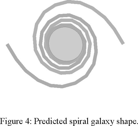 This shape is shown in Figure 4. As an example consider r = 30,000 light years and v=200km/s then with T=14 billion light years we find from (6.8) that the radial distance decays by about 650 light-years per revolution, which takes about 270 million years.
